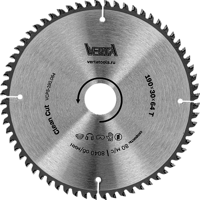 Диск пильный по ламинату и МДФ 190x30x64T Clean Cut VERTA