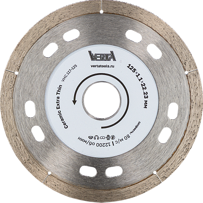 Диск алмазный 125x1,1x22,2мм сплошной влажный рез Ceramic Extra Thin VERTA