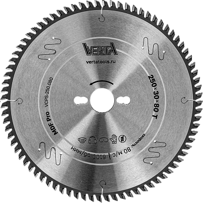 Диск пильный по ламинату и МДФ 250x30x80T MDF Pro VERTA