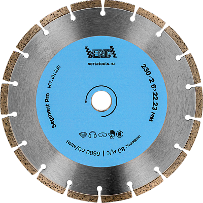 Диск алмазный 230x2,6x22,2мм сегментный сухой и влажный рез Segment Pro VERTA