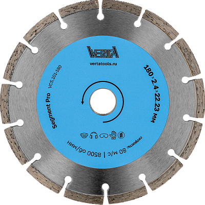Диск алмазный 180x2,4x22,2мм сегментный сухой и влажный рез Segment Pro VERTA