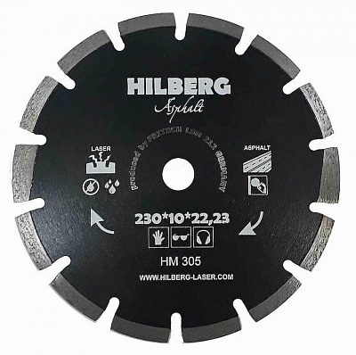 Диск алмазный 230х2,3х22,2мм по асфальту и свежему бетону сухой и влажный рез Asphalt Laser HILBERG