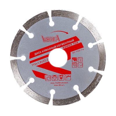 Диск алмазный 115х1,8х22,2мм сегментный сухой рез Power Top VERTA
