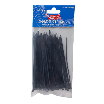 Хомут-стяжка 2,5х120мм нейлоновый черный VERTA