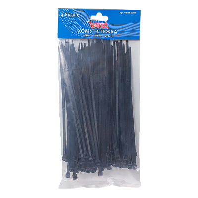 Хомут-стяжка 4,8х200мм нейлоновый черный VERTA