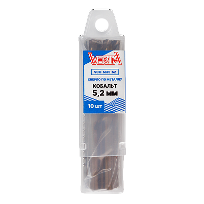 Сверло по металлу кобальт с цилиндрическим хвостовиком 5,2мм (10шт) VERTA