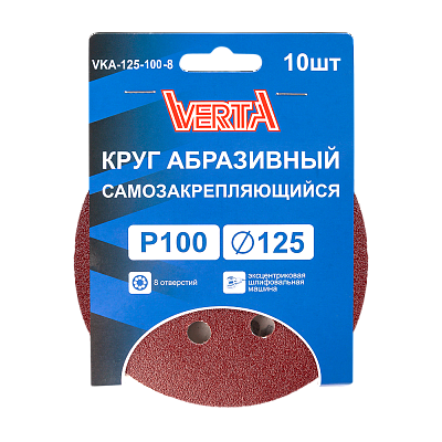 Круг абразивный самозакрепляющийся 125мм Р100 8 отверстий (10шт) VERTA