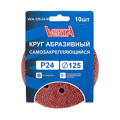Круг абразивный самозакрепляющийся 125мм Р24 8 отверстий (10шт) VERTA