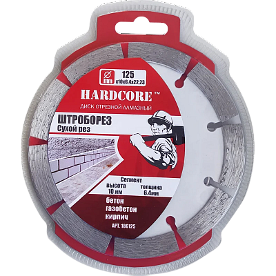 Диск алмазный 125х6,4х22,23мм по бетону штроборез сухой рез HARDCORE