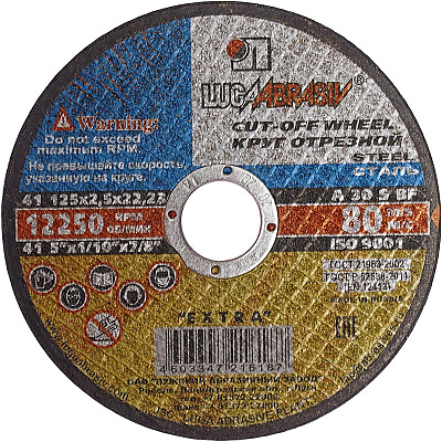 Круг отрезной 125х2,5х22мм А30 по металлу и нержавеющей стали 12250об/мин 80м/с Extra ЛУГА