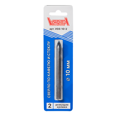 Сверло по кафелю и стеклу с цилиндрическим хвостовиком 10мм 2 режущих кромки VERTA