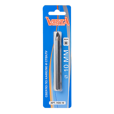 Сверло по кафелю и стеклу с цилиндрическим хвостовиком 10мм 4 режущих кромки VERTA