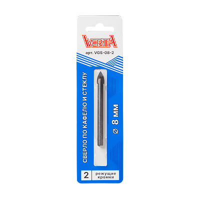 Сверло по кафелю и стеклу с цилиндрическим хвостовиком 8мм 2 режущих кромки VERTA