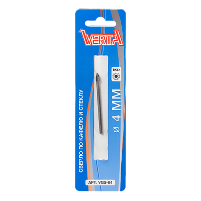 Сверло по кафелю и стеклу с цилиндрическим хвостовиком 4мм 2 режущих кромки VERTA