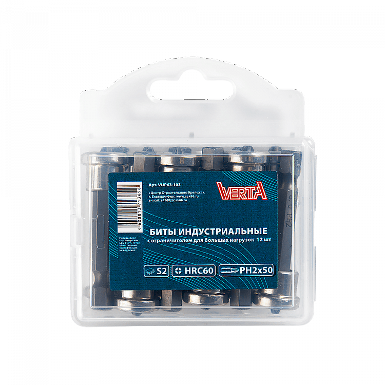 Биты Ph2х50мм с вращающимся ограничителем для больших нагрузок (12шт) ULTRAPROFI VERTA