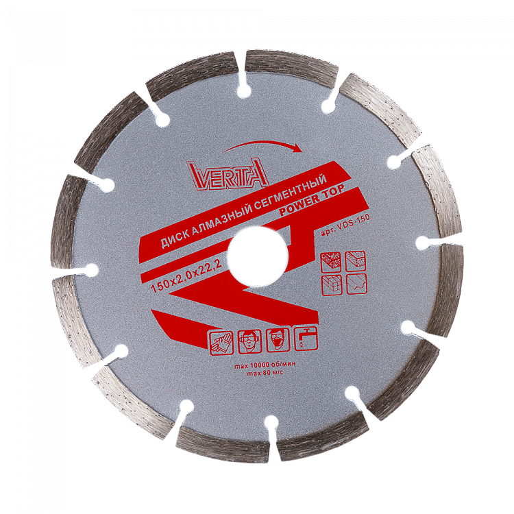 Диск алмазный 150х2,0х22,2мм сегментный сухой рез Power Top VERTA