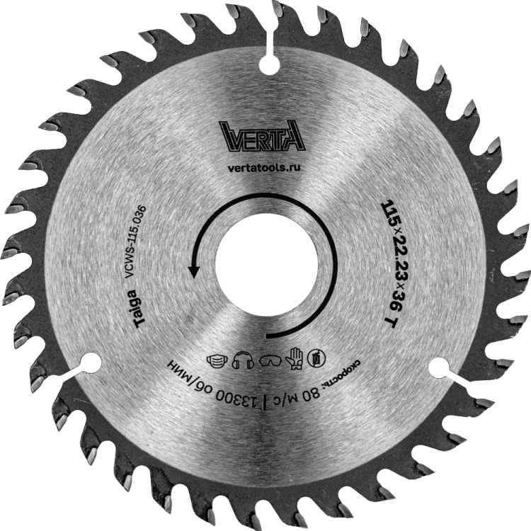 Диск пильный по дереву 115x22,23x36T Taiga VERTA