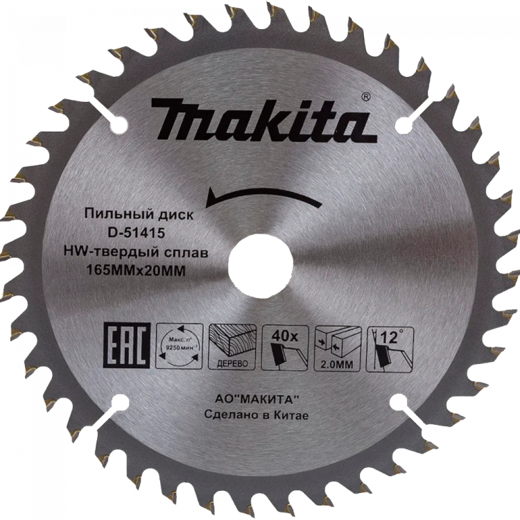 Диск пильный по дереву 165x20x2/1.2x40T MAKITA