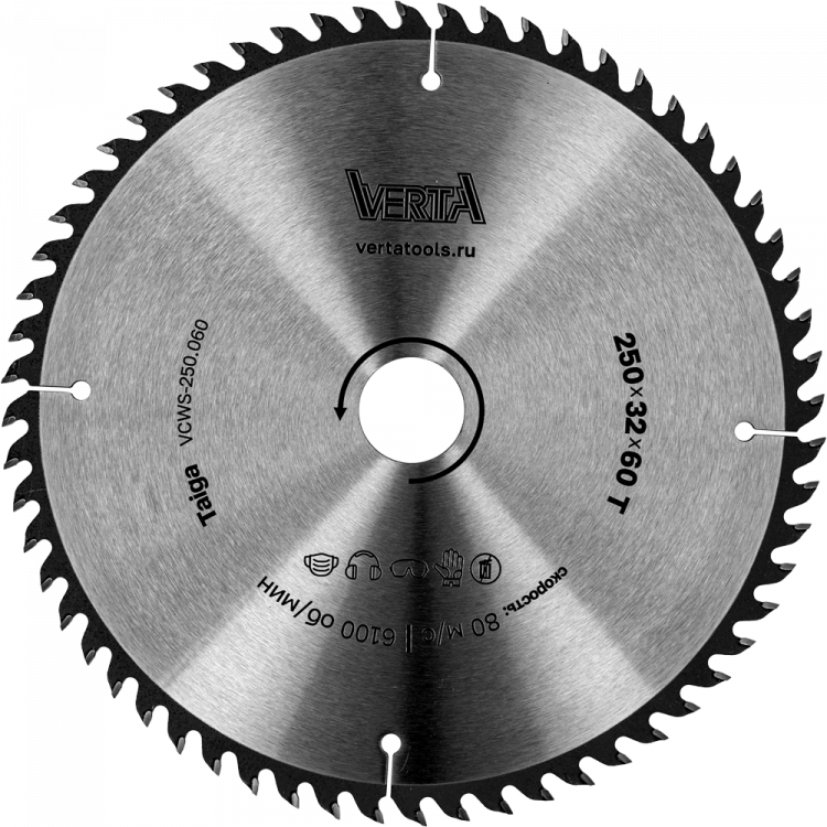 Диск пильный по дереву 250x32x60T Taiga VERTA