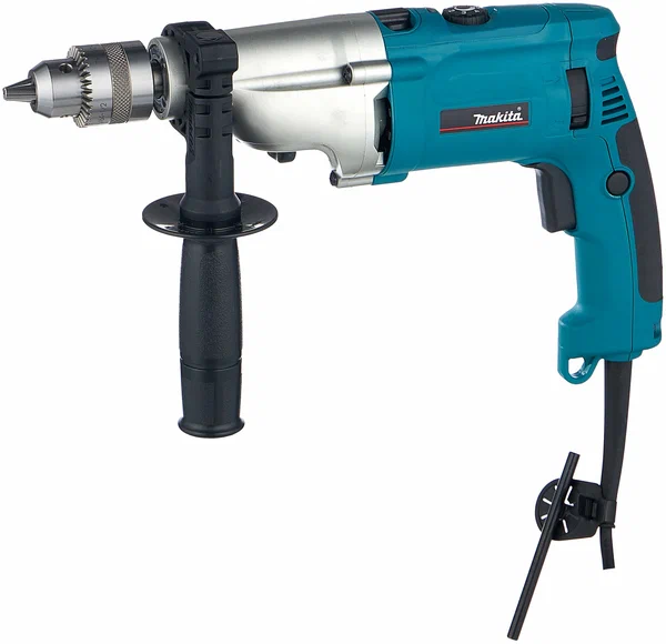 Ударная дрель Makita HP 2070 – это небольшой инструмент с узким корпусом. Она обладает высокой мощностью с возможностью регулировки количества оборотов. Функция реверса дает возможность использовать инструмент как шуруповерт. Дрель оснащена расцепляющей муфтой, которая при заклинивании бура остановит вращение во избежании поломки инструмента и получения оператором травмы.