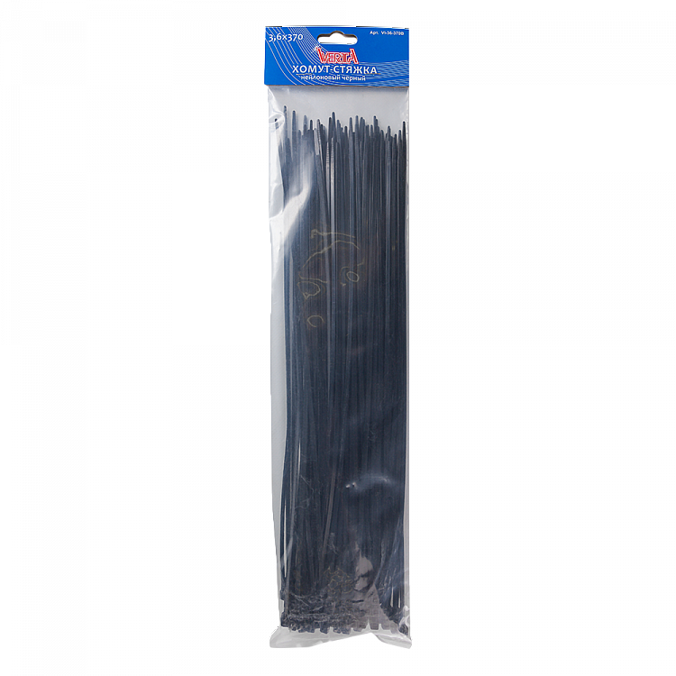 Хомут-стяжка 3,6х370мм нейлоновый черный VERTA