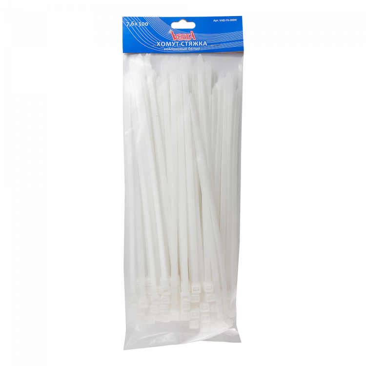 Хомут-стяжка 7,6х300мм нейлоновый белый VERTA