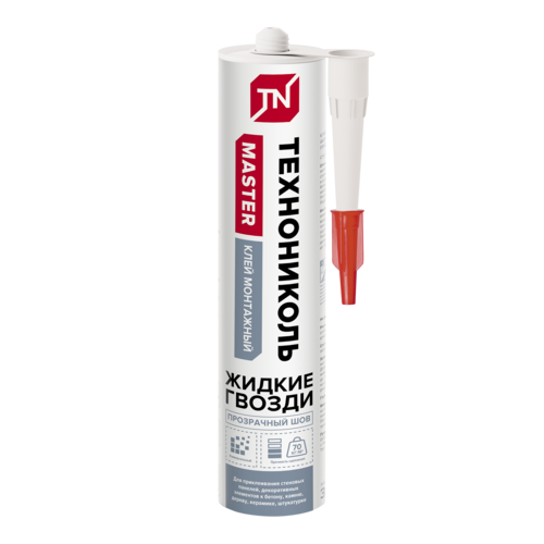 Клей ТЕХНОНИКОЛЬ MASTER акриловый универсальный «Прозрачный шов» – универсальный строительный клей на основе акриловой дисперсии. Клей затвердевает при испарении влаги (поэтому одна из поверхностей должна быть пористой), образуя прочное, надежное и долговечное соединение. Не содержит растворителей и не имеет запаха. Цвет – при нанесении белый, после высыхания становиться прозрачным.