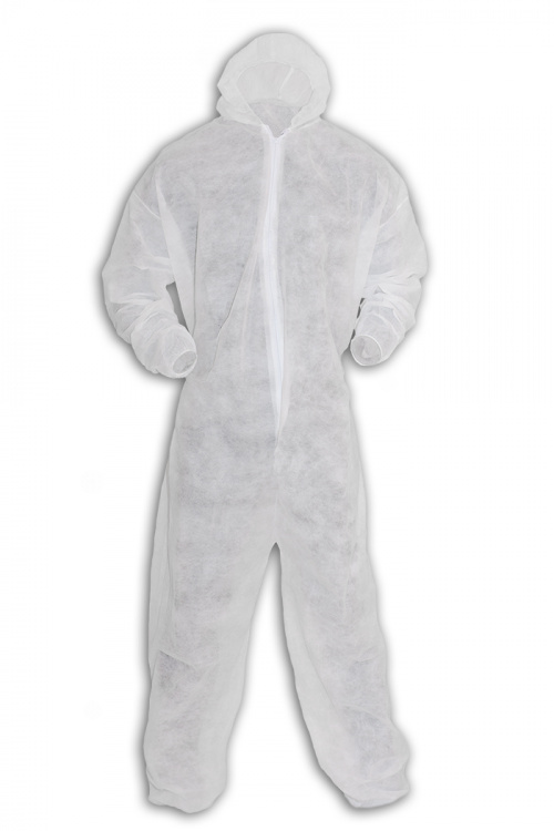Одноразовый комбинезон - самый распространенный тип защитной одежды краткосрочного использования. Комбинезон изготавливается из нетканых материалов на основе полипропилена и обладает следующими свойствами: легкостью и достаточной прочностью, защищает от частиц мелкодисперсной пыли, не промокает при попадании капель жидкости, материал «дышит», обеспечивая хорошую паро- воздухо- проницаемость. Используется в строительстве,