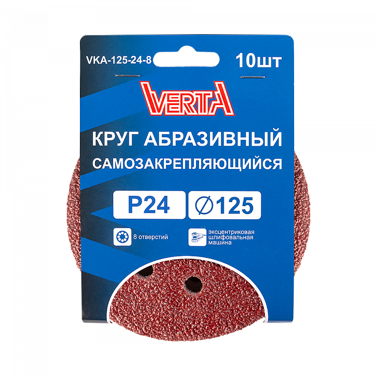Круг абразивный самозакрепляющийся 125мм Р24 8 отверстий (10шт) VERTA