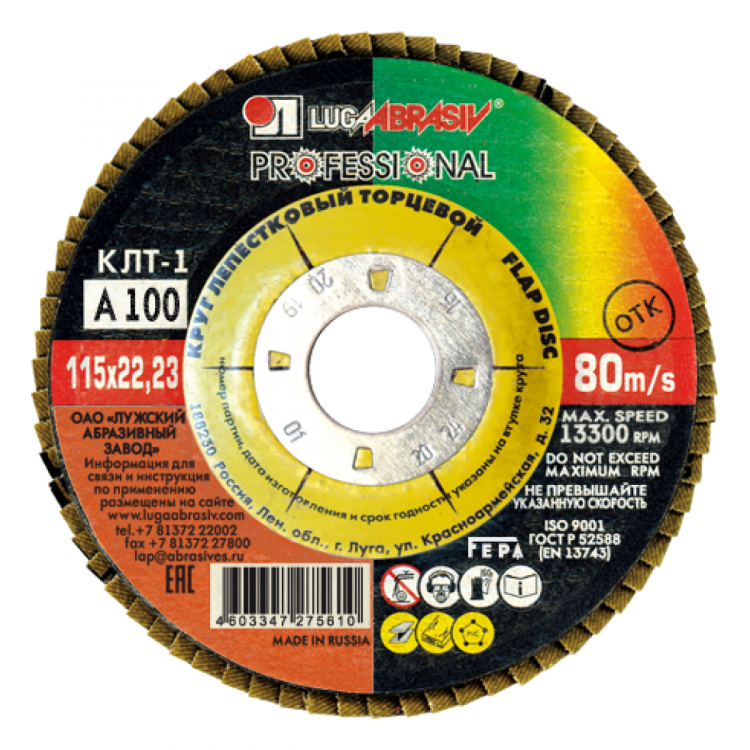 Круг лепестковый 115х22мм A/Р100 КЛТ_1 прямой ЛУГА