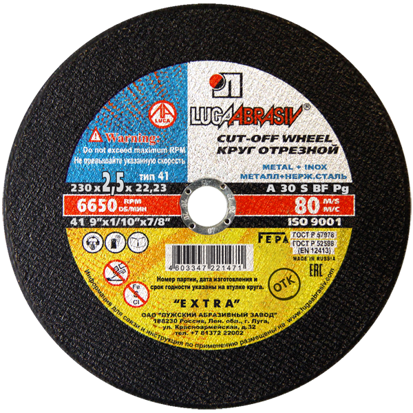 Круг отрезной 230х2,5х22мм А30 по металлу Extra ЛУГА