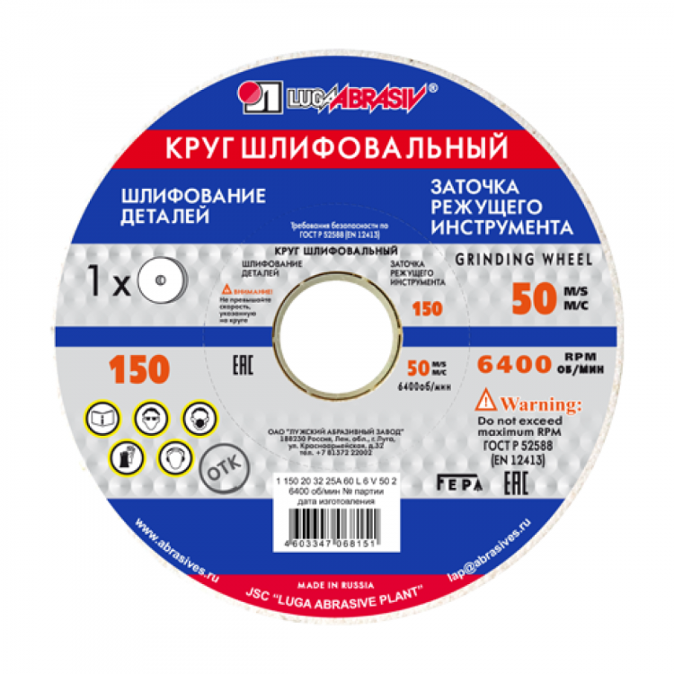 Шлифовальный круг размером 150х20х32мм с абразивом из белого электрокорунда 25A (белый) с зернистостью F60 и твердостью K, устанавливается на точило с посадочным диаметром 32мм. Используется для заточки режущих инструментов, а также для плоского шлифования поверхностей из углеродистых, быстрорежущих и нержавеющих сталей. Шлифкруг подходит для обработки тонких деталей и инструментов — ножей, резцов, зубьев, сверл.