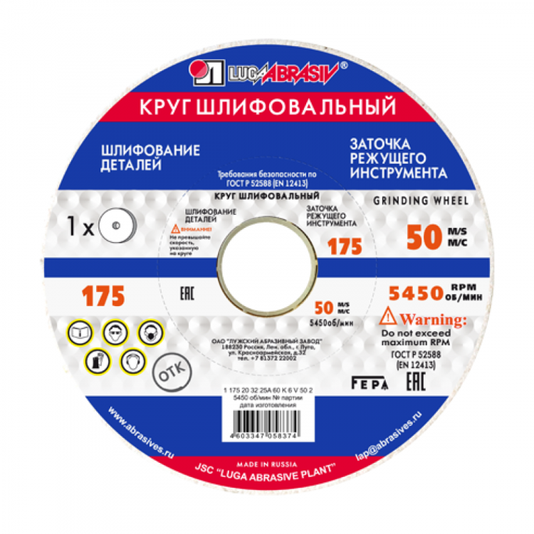 Круг шлифовальный 1 175х20х32мм 25А (белый) F60 К,L (среднемягкий) ЛУГА