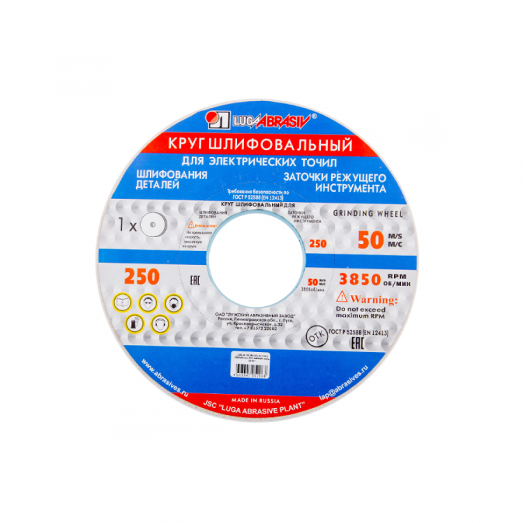 Круг шлифовальный 1 250х40х76мм 25А (белый) F40 K,L (среднемягкий) ЛУГА