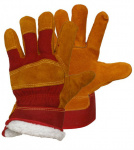 Перчатки спилковые комбинированные утепленные искусственный мех желтые с красным