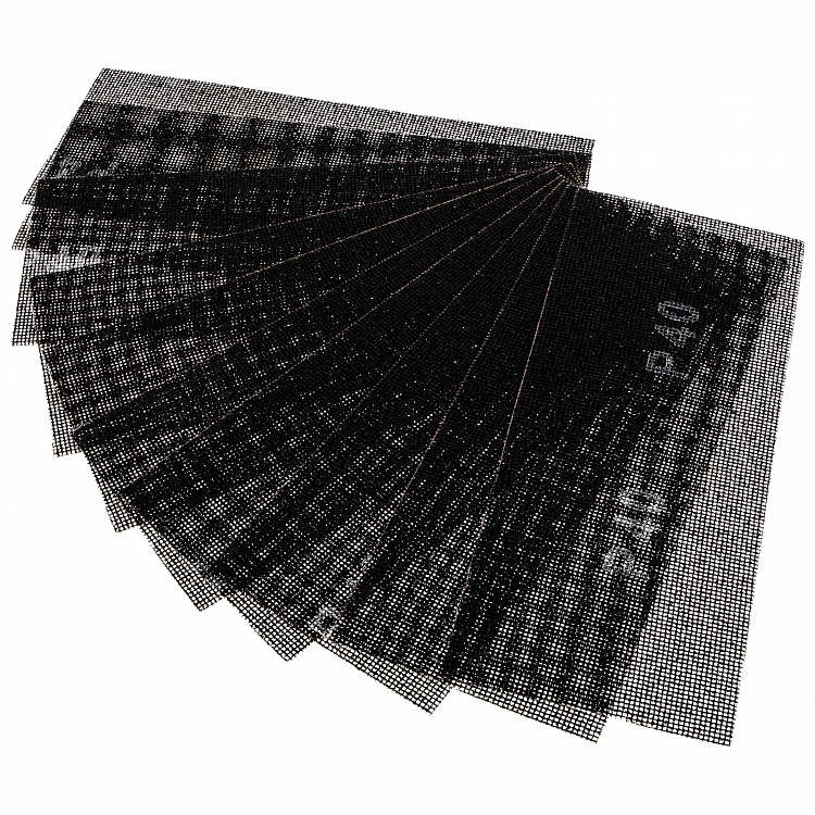 Абразивная сетка Sparta 751185 размером 115 х 280 мм, с зернистостью P 40, 10 шт. в упаковке, применяется для черновой обработки шпаклеванной поверхности или мягкой древесины, подходит также для шлифовки металлических поверхностей. Крупнозернистый абразив P 40 эффективно снимает толстый слой материала, лак и краску, а также удаляет ржавчину и заусенцы. Сетку устанавливают на ручное приспособление для шлифования — брусок или сеткодержатель. Благодаря основе из прочного стекловолокна она выдерживает многократное применение.
