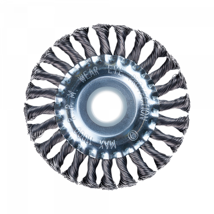Применяется для шлифовки, зачистки от лака, краски и коррозии различных поверхностей и изделий. Рабочая часть состоит из крученой стальной закаленной проволоки. Специальная форма щетки в виде диска и упругие плетеные пучки позволяют работать в трудно-доступных местах. Проволока обладает высокой стойкостью.