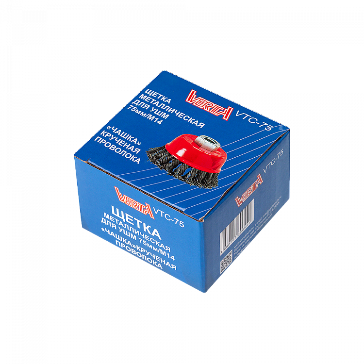 Щетка металлическая для УШМ 75мм/М14 чашка крученая проволока VERTA