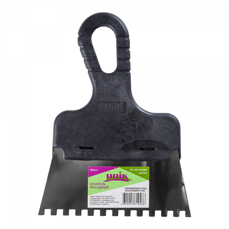 Шпатель 150мм фасадный нержавеющая сталь зуб 6х6мм пластиковая ручка UNIK
