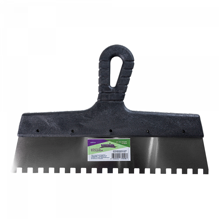 Шпатель 200мм фасадный нержавеющая сталь зуб 8х8мм пластиковая ручка UNIK